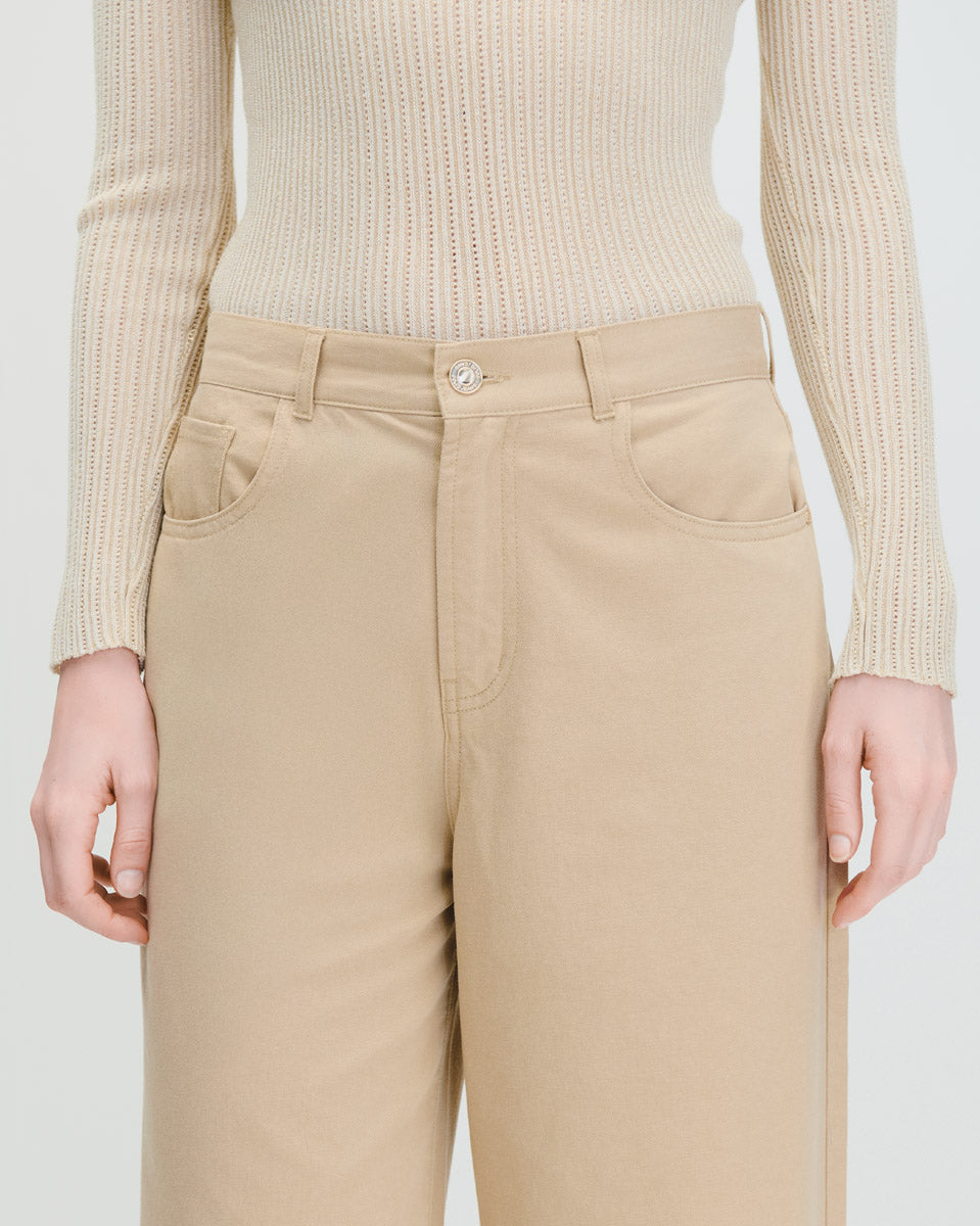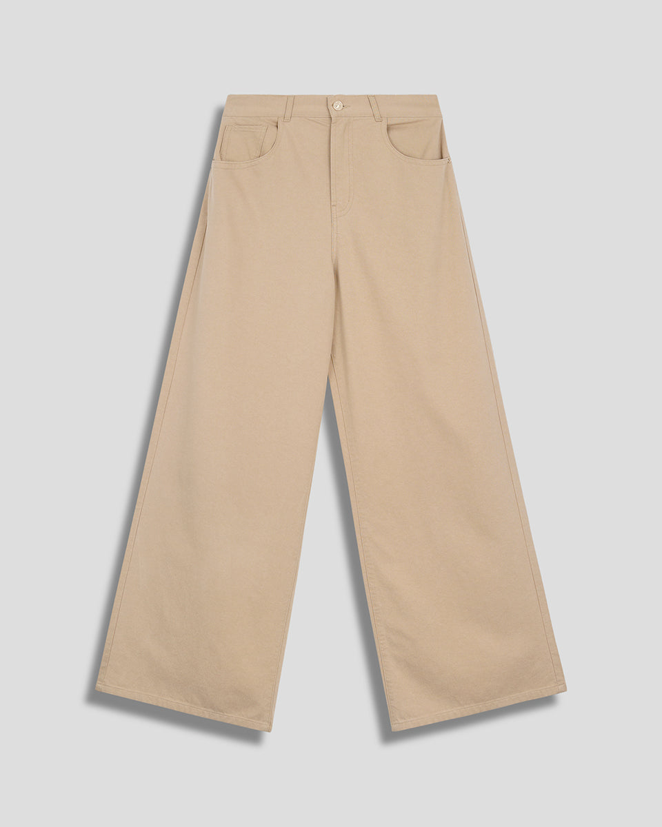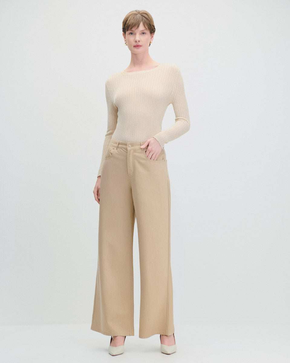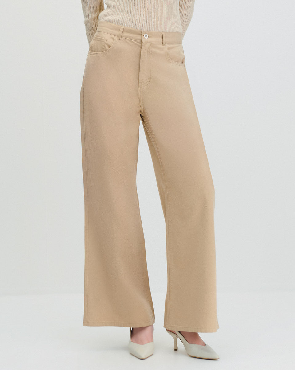 Pantalón Palazzo Tiro Alto Beige Tipo Jeans