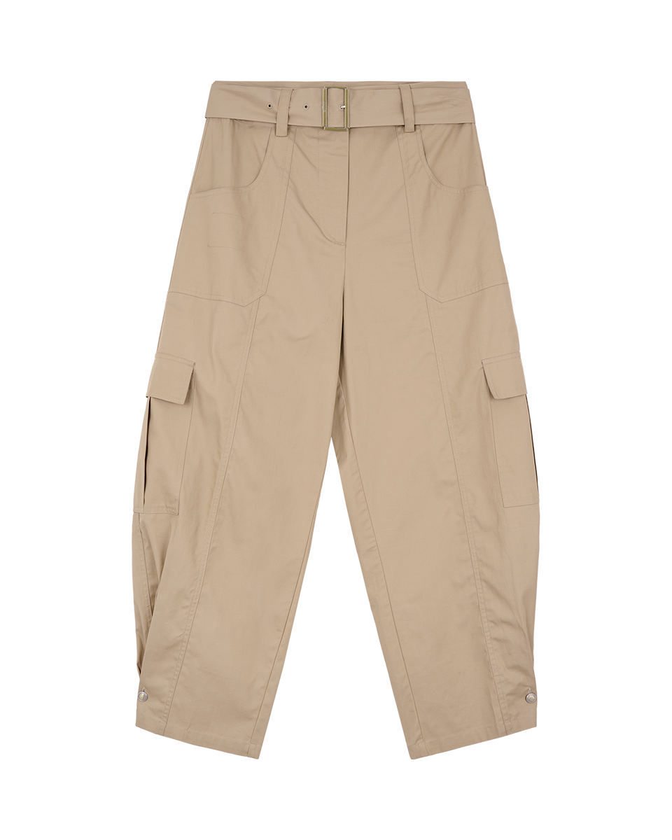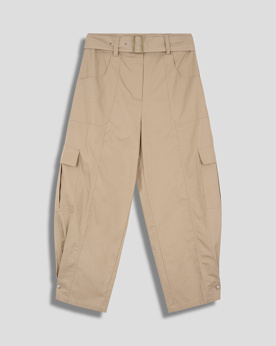 Pantalón Cargo Tiro Alto Kaki Botón Ajustable En Ruedo Con Cinturón