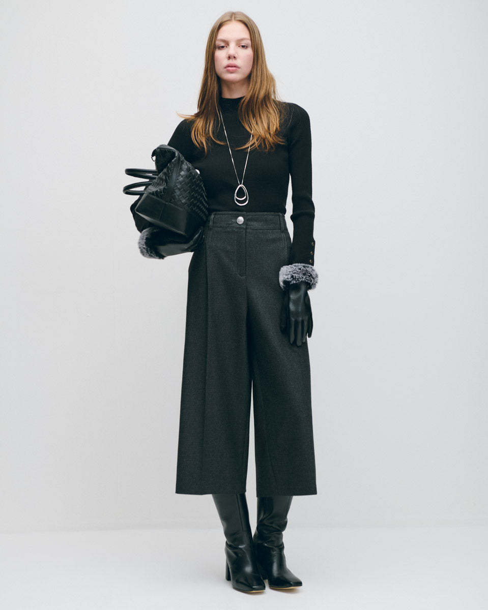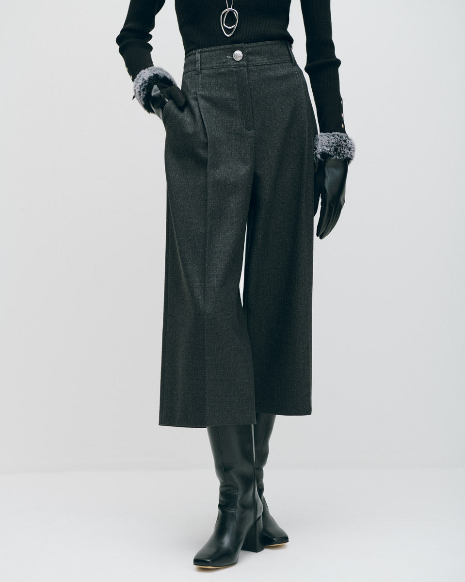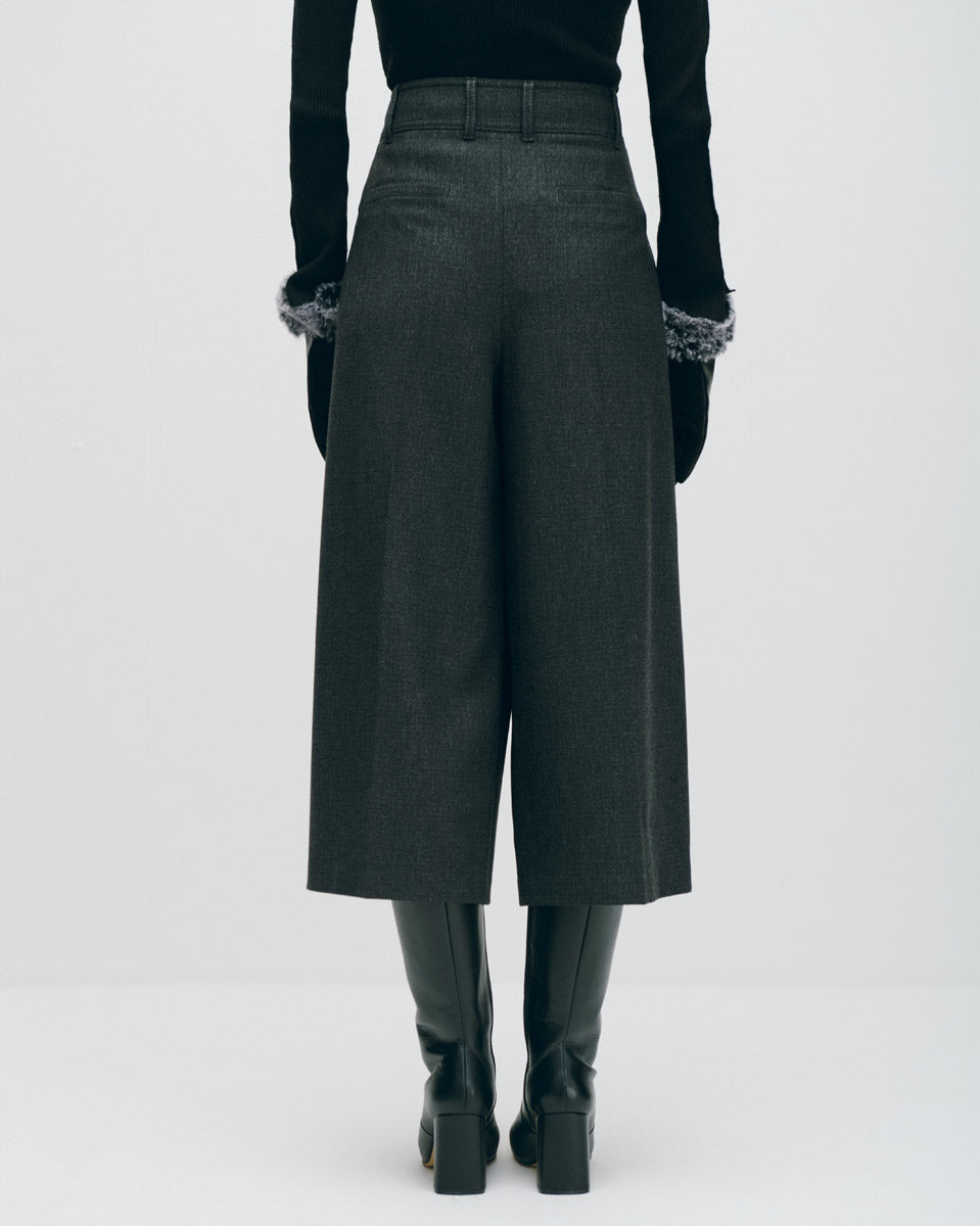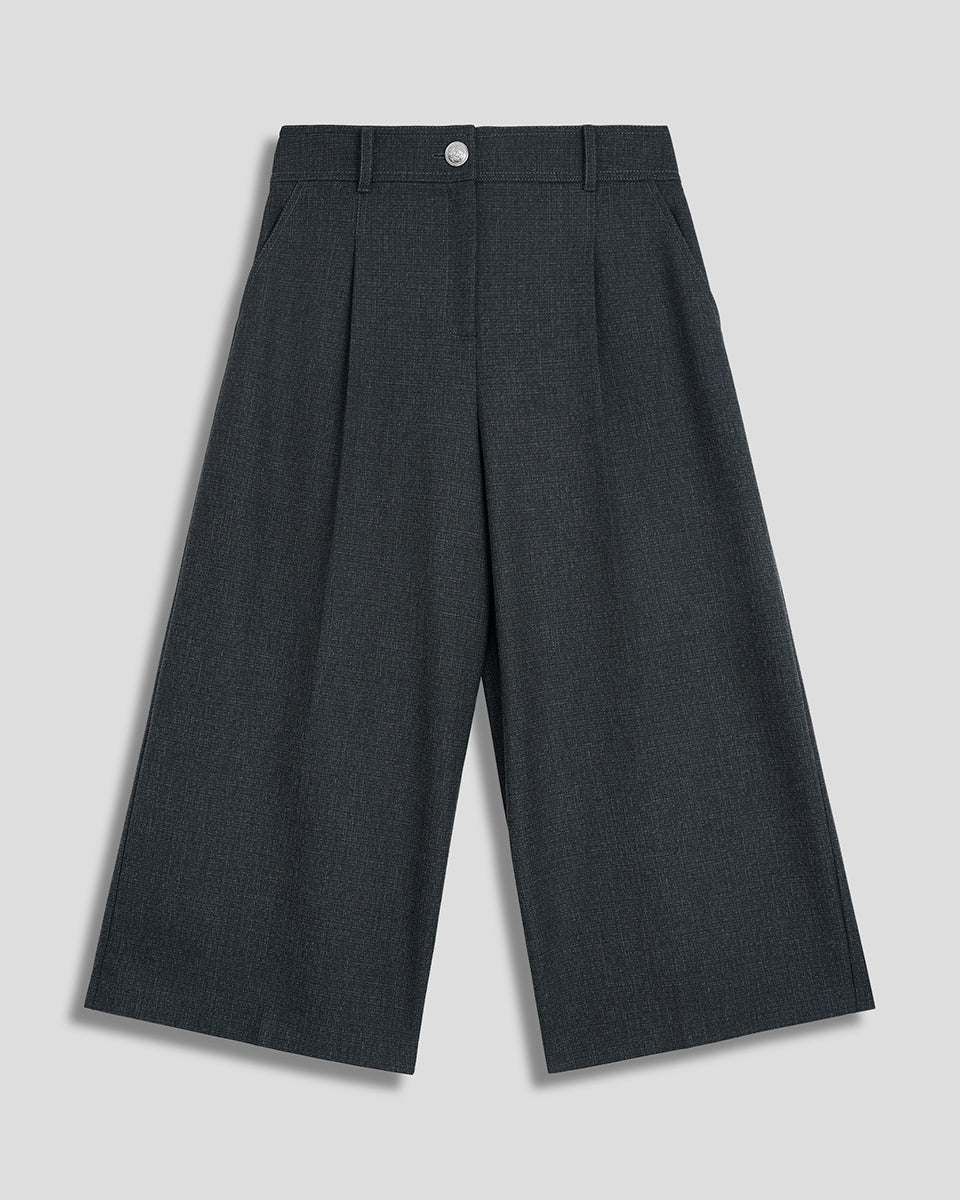 Pantalón Culotte Gris Oxford Tiro Alto Con Pinzas