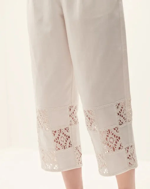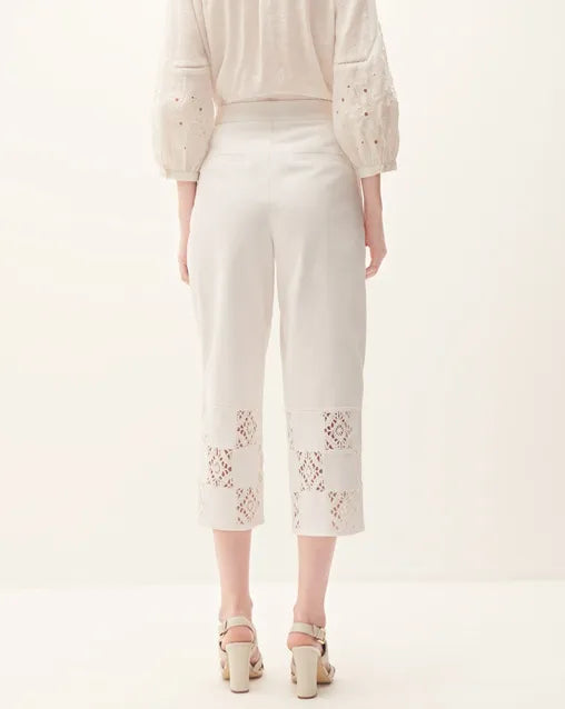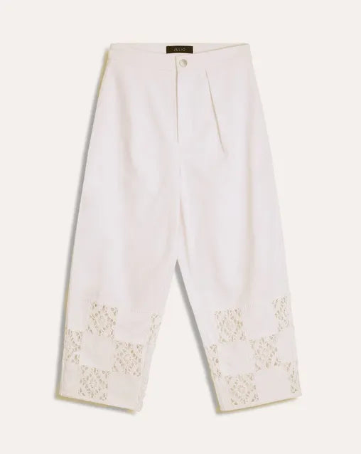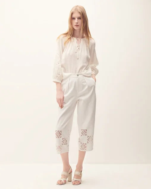 Pantalón Culotte Tiro Alto Blanco Cenefa Bordada Y Pinzas