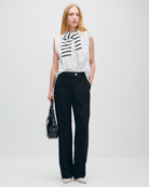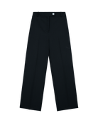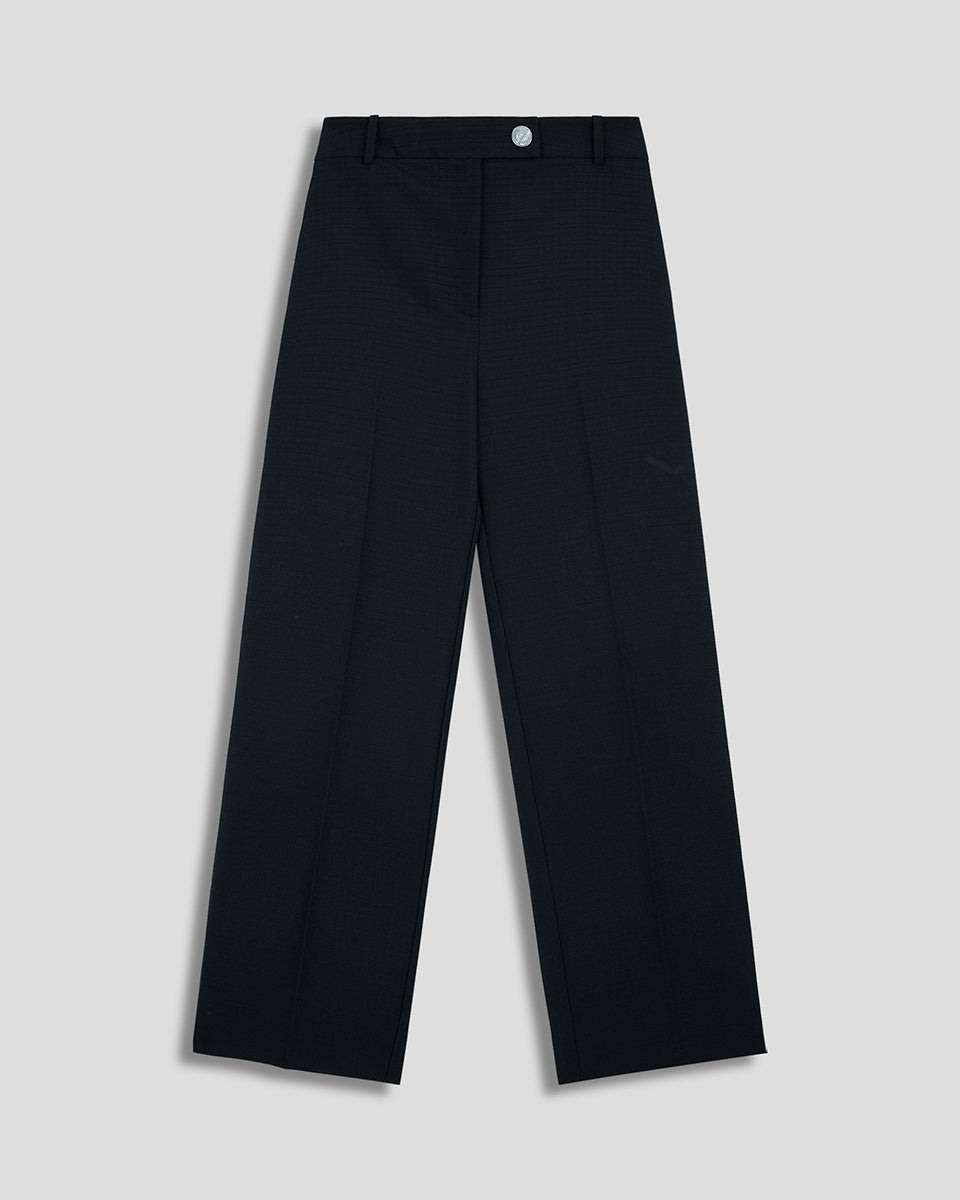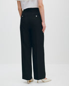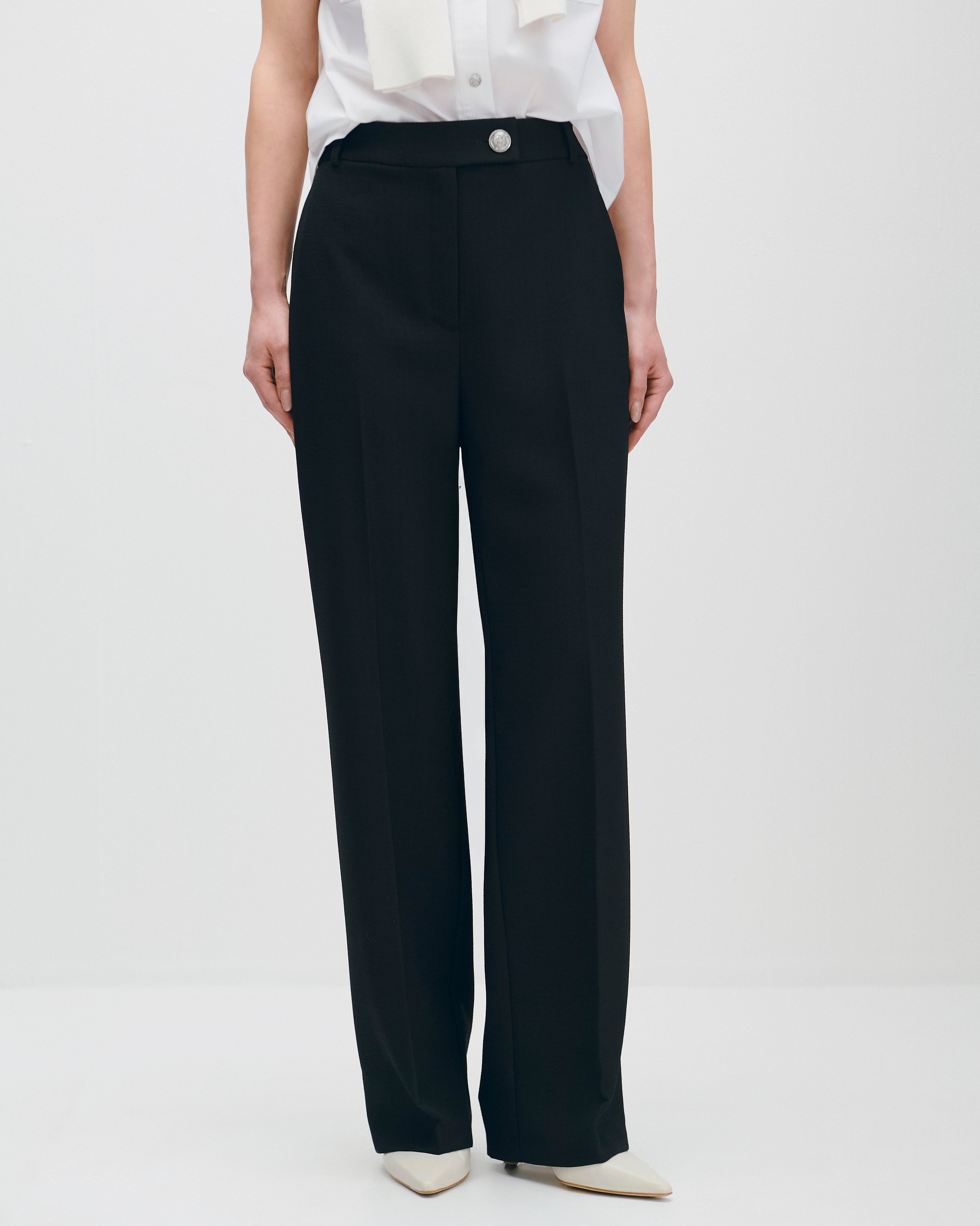 Pantalón Negro Recto Fluido Tiro Alto Tejido Canasta