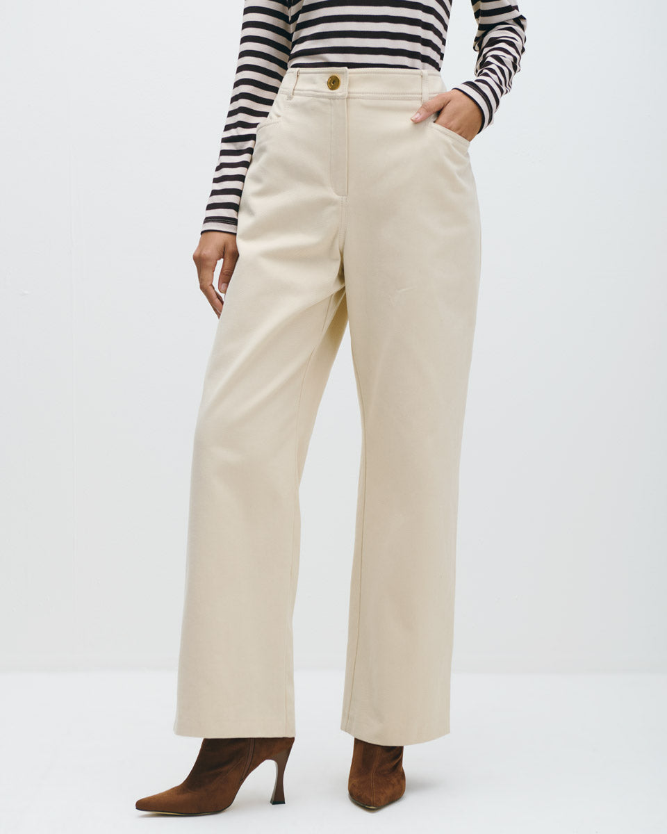 Este pantalón tipo jeans con tacto esmerilado y corte recto fluido ofrece el fit de tus denim favoritos con suavidad extra. Lúcelo con camisas estructuradas, blusas oversize o tops entallados. Ideal para quienes buscan estilo relajado con texturas nuevas.