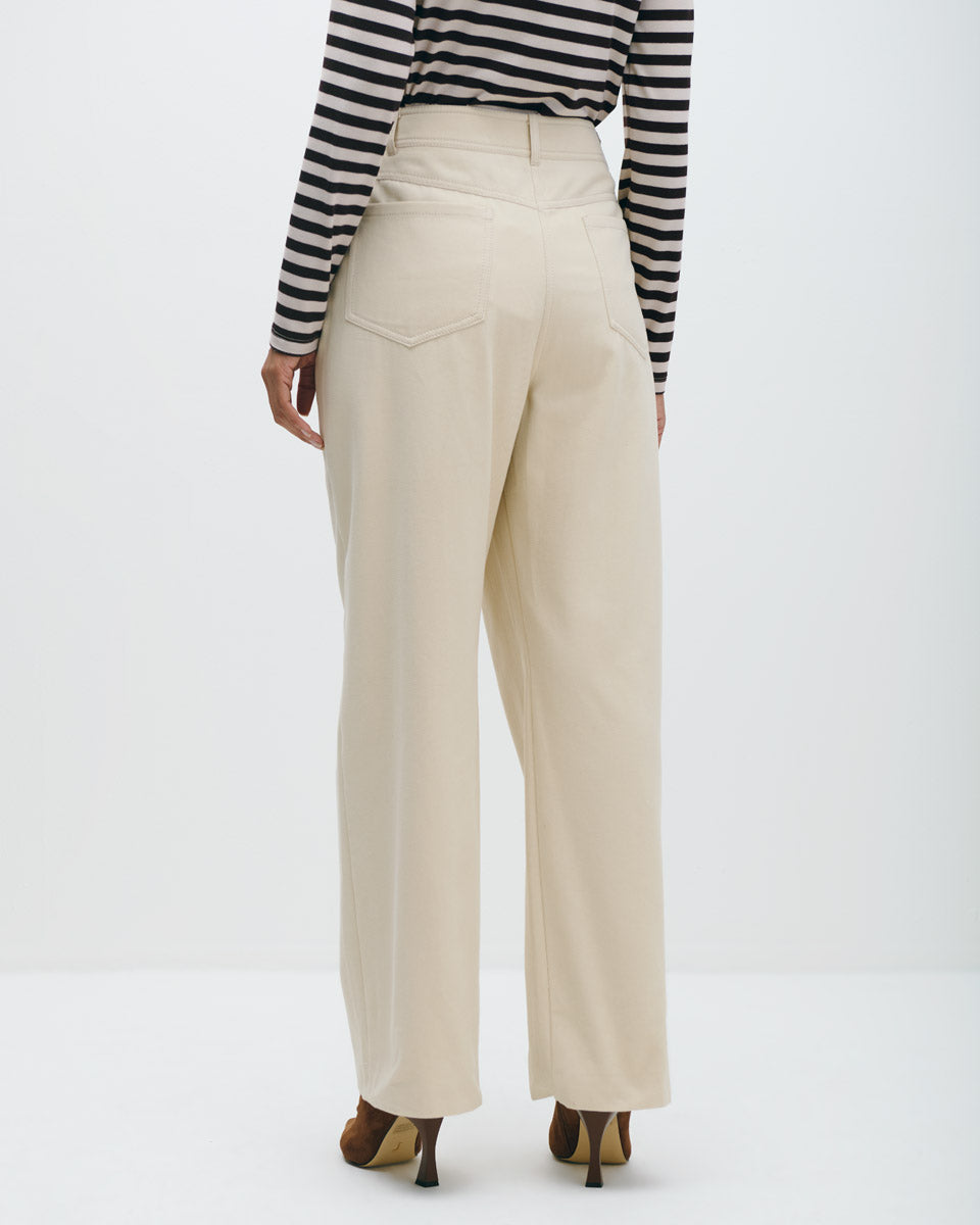 Pantalón Recto Fluido Tiro Alto Tipo Jeans Tacto Esmerilado