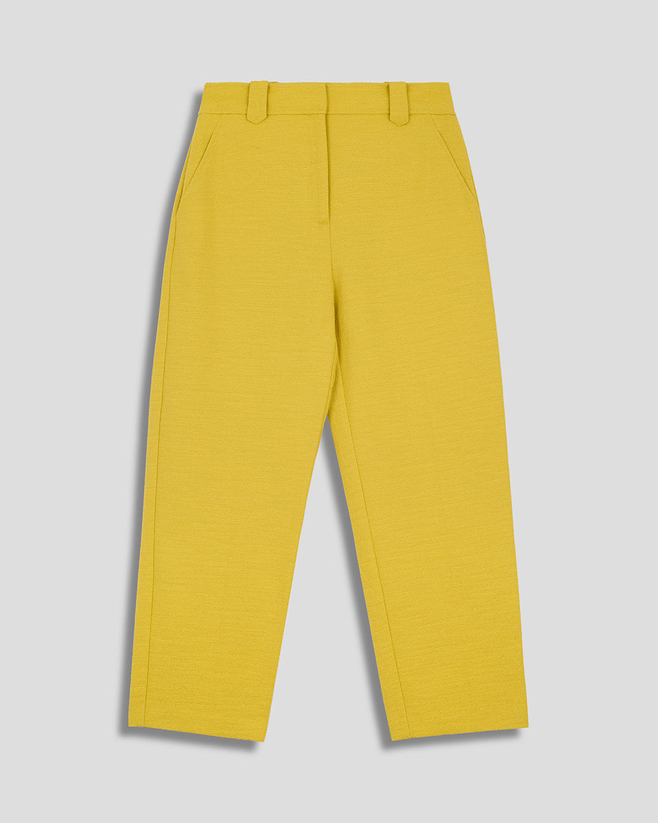 Pantalón Recto Tiro Alto De Tweed Amarillo Aceite
