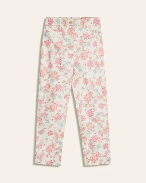 Pantalón Recto Tiro Alto Estampado Floral Con Stretch