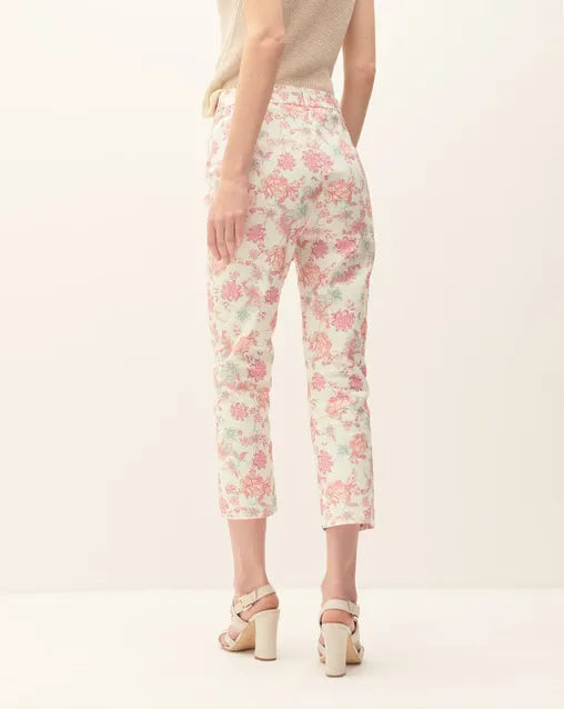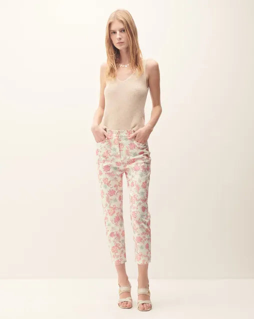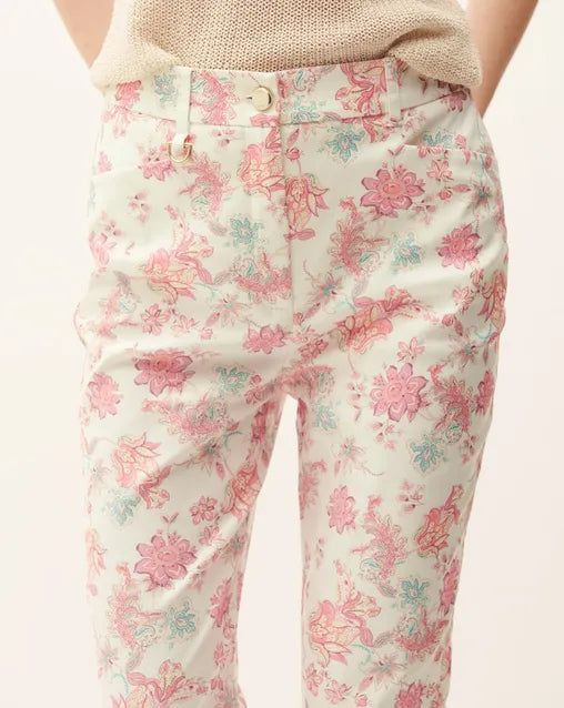 Este pantalón estampado floral con tiro alto y stretch equilibra comodidad y estilo. Ideal con top de punto y sandalias para un look fresco, o con blazer y mocasines para un outfit refinado.