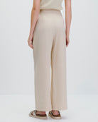 Pantalón Wide Leg Tiro Alto Beige Efecto Corrugado