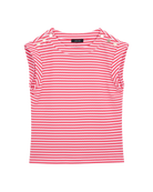 Blusa Tejido Piqué A Rayas Rosa Y Blanco Manga Sisa Botones En Hombro