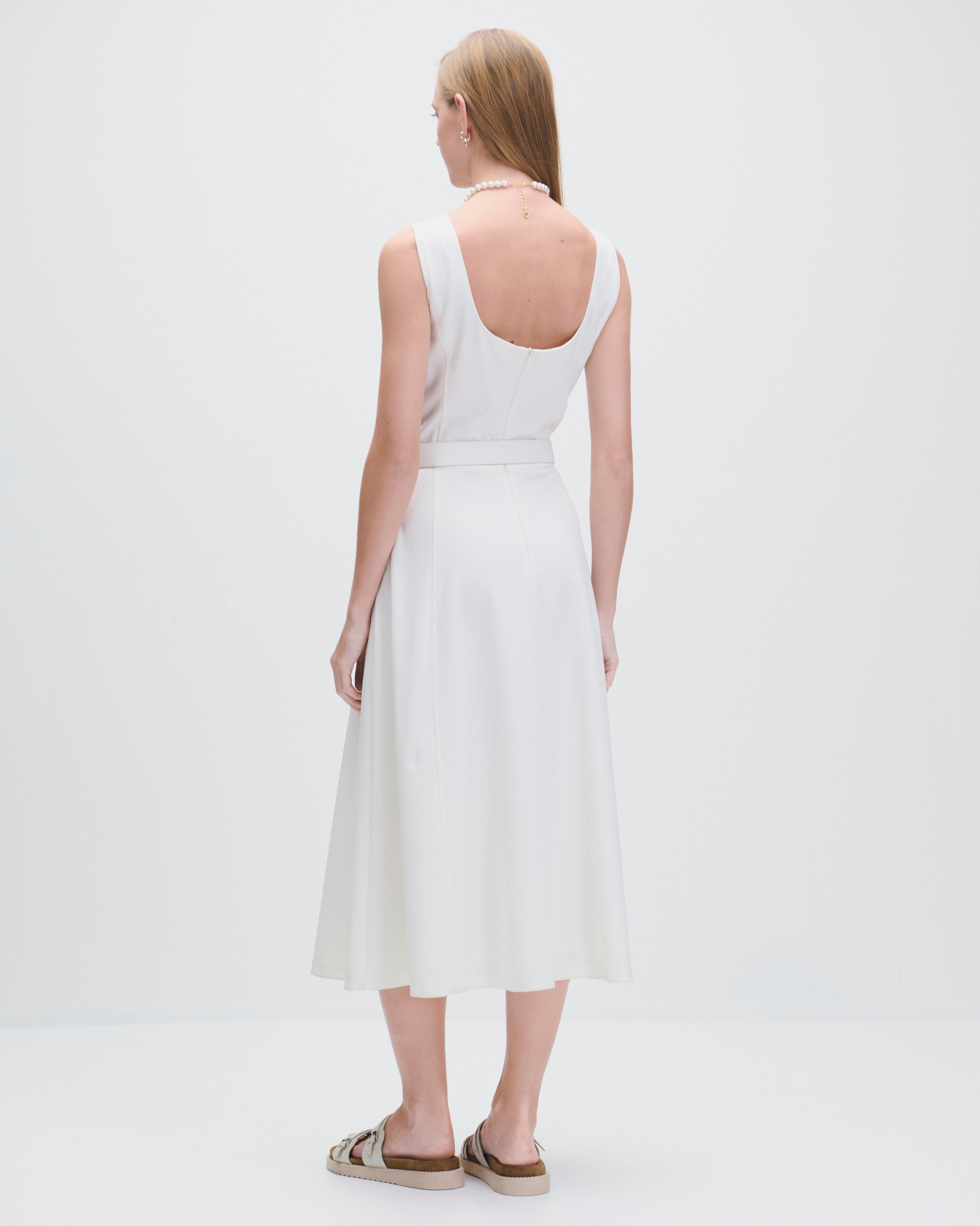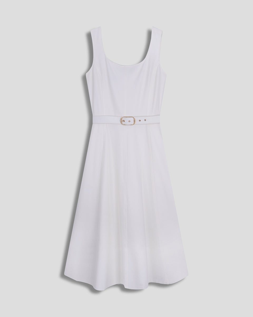 Vestido De Punto Off White Corte Francés Pespuntes Y Cinturón