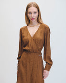 Rumper Envolvente De Jacquard Satinado Animal Print Café Detalle Cadena