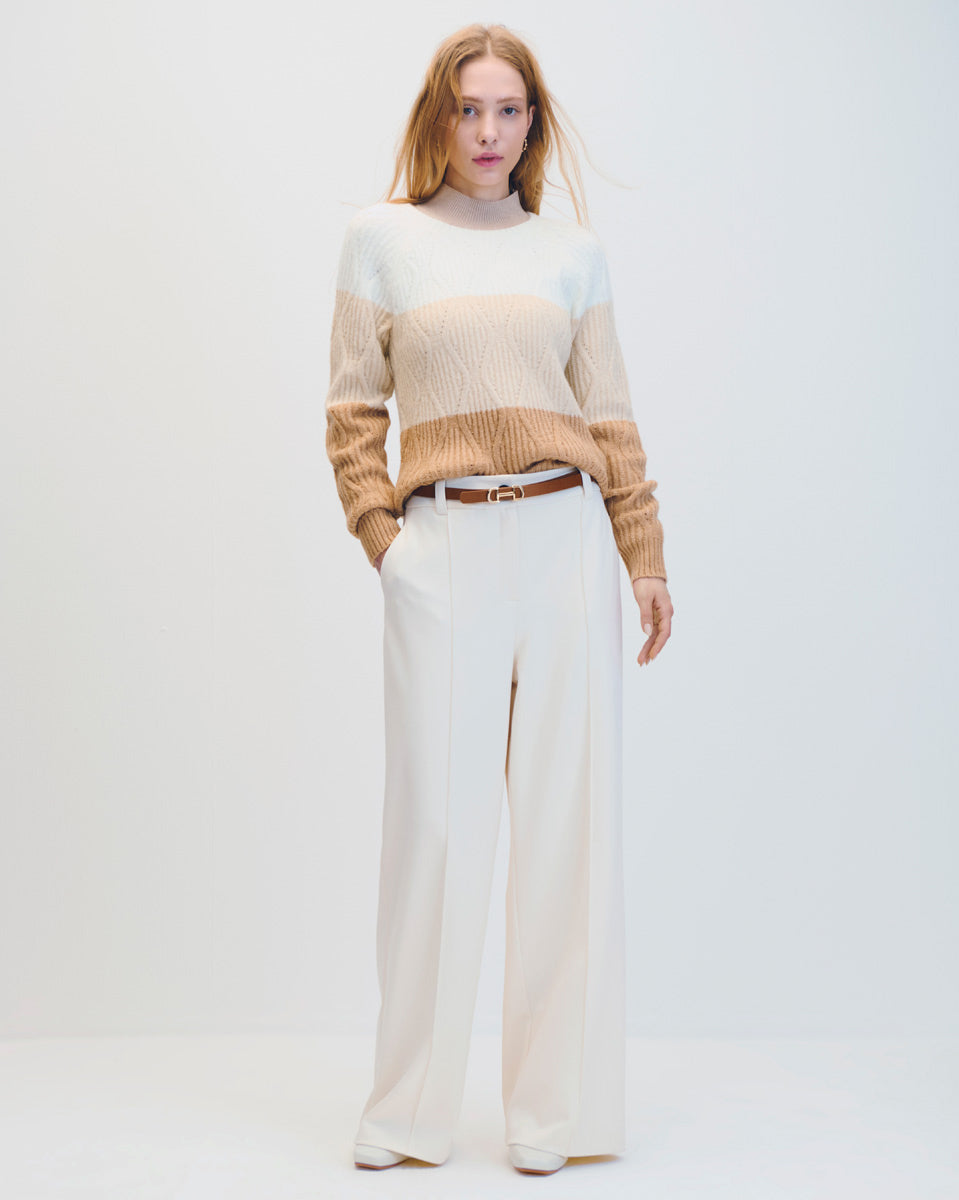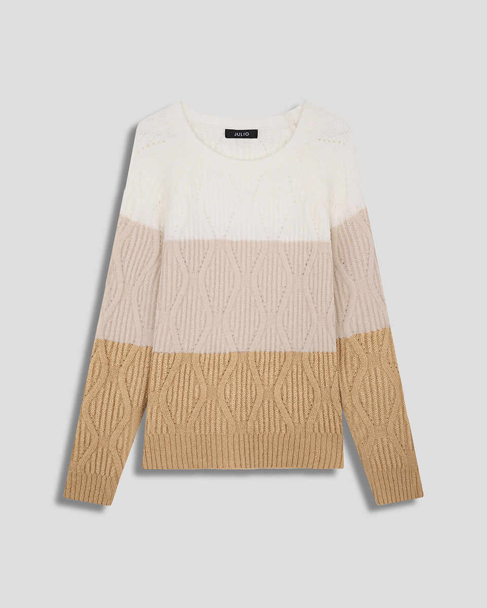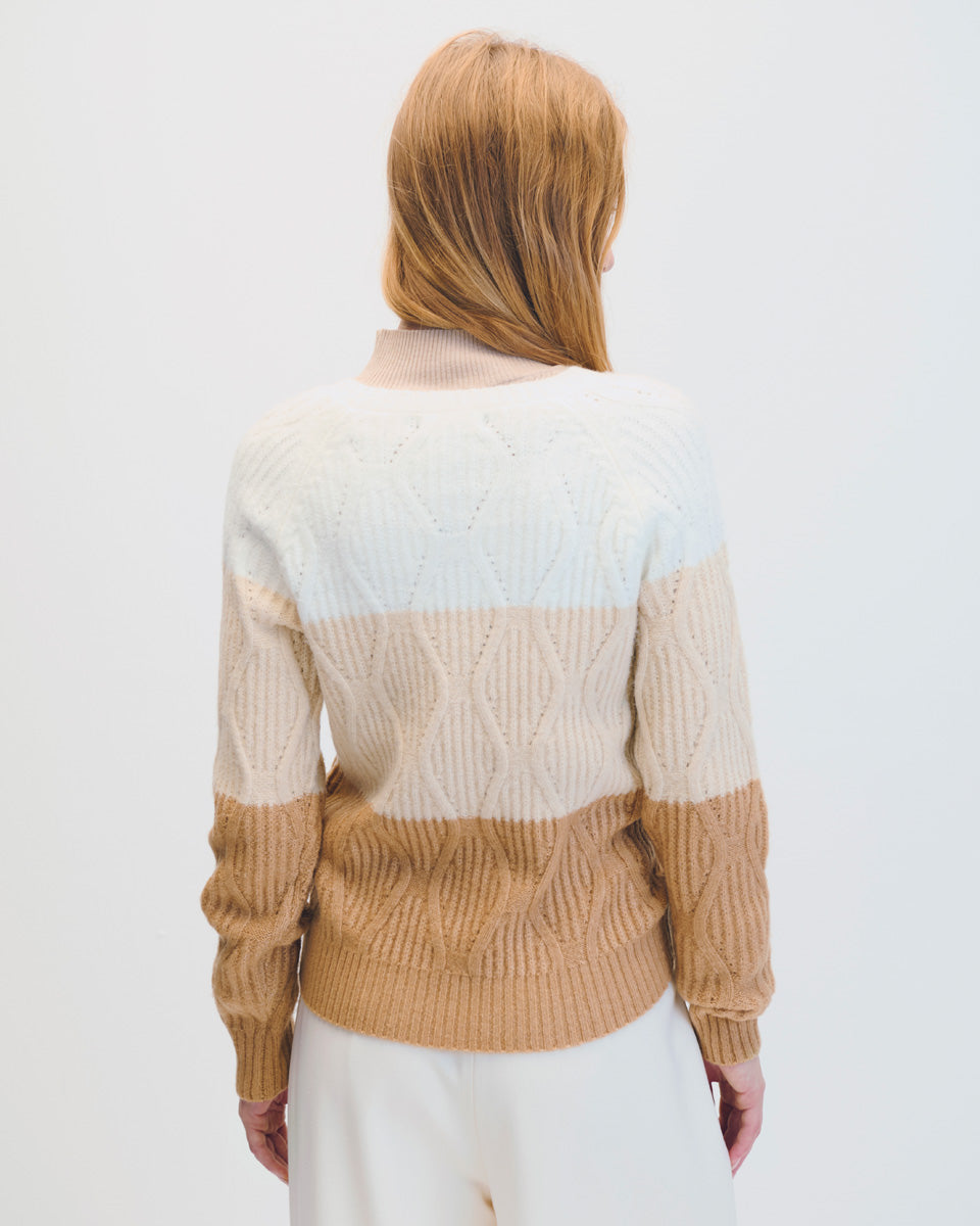 Suéter Tejido De Punto Arena Cenefa En Contraste
