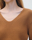 Suéter Tejido De Punto Avellana Escote V Manga Globo