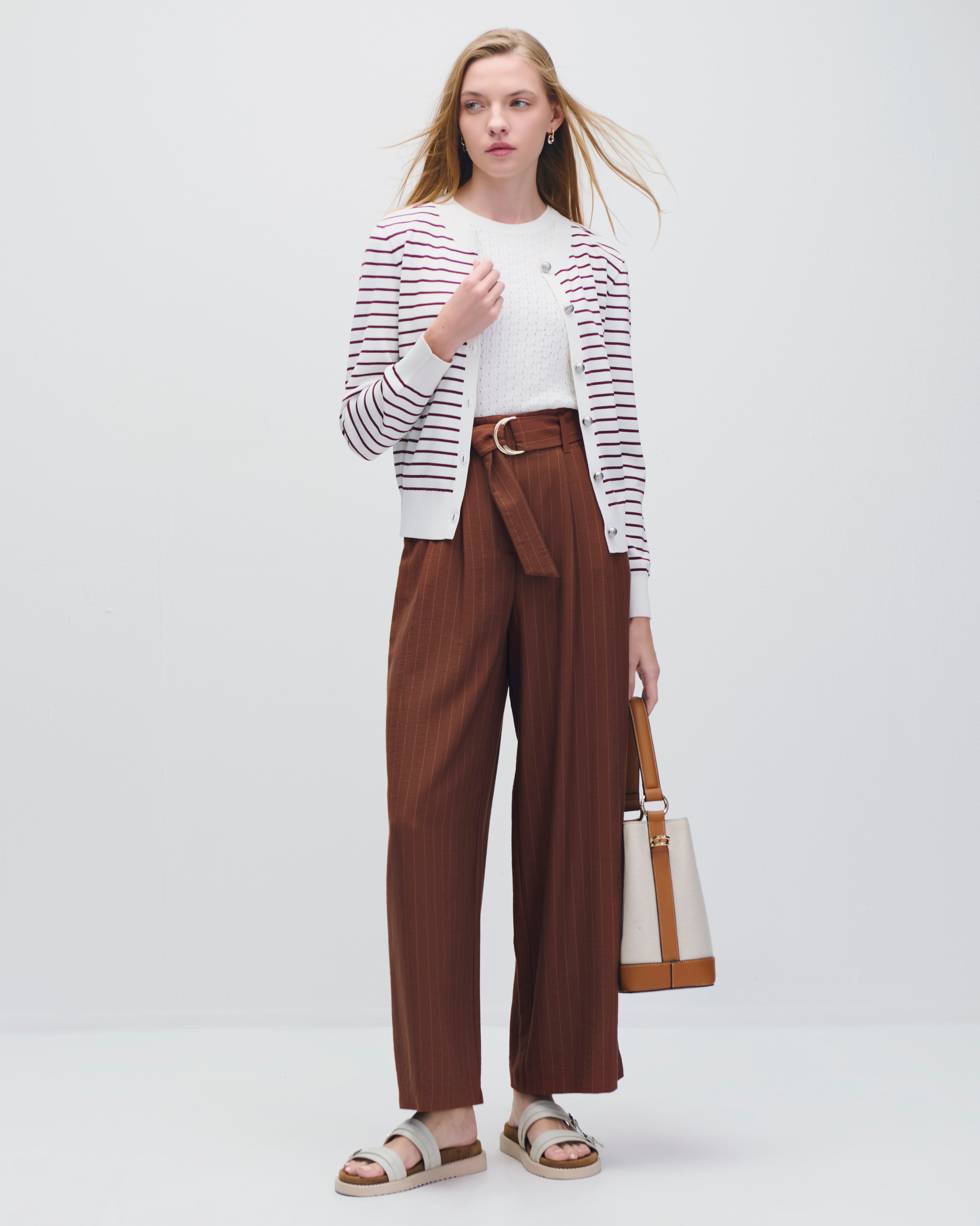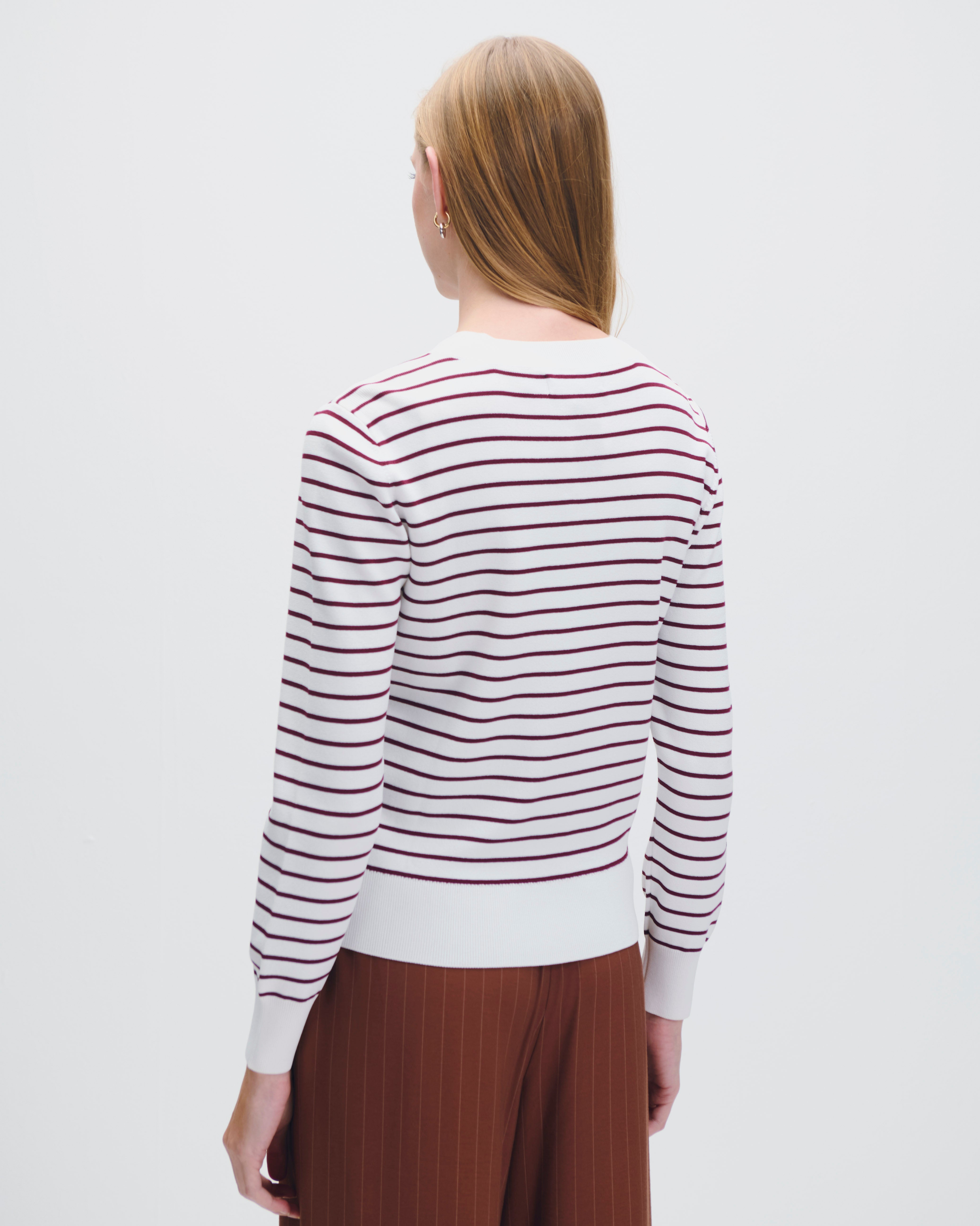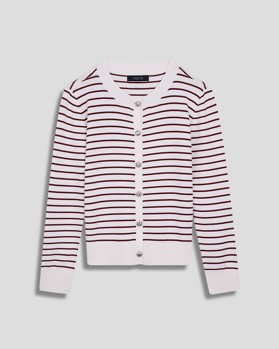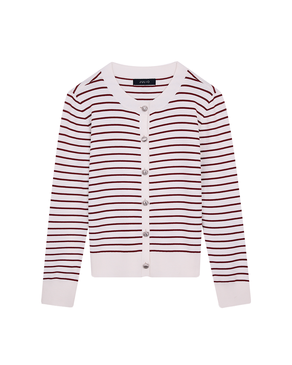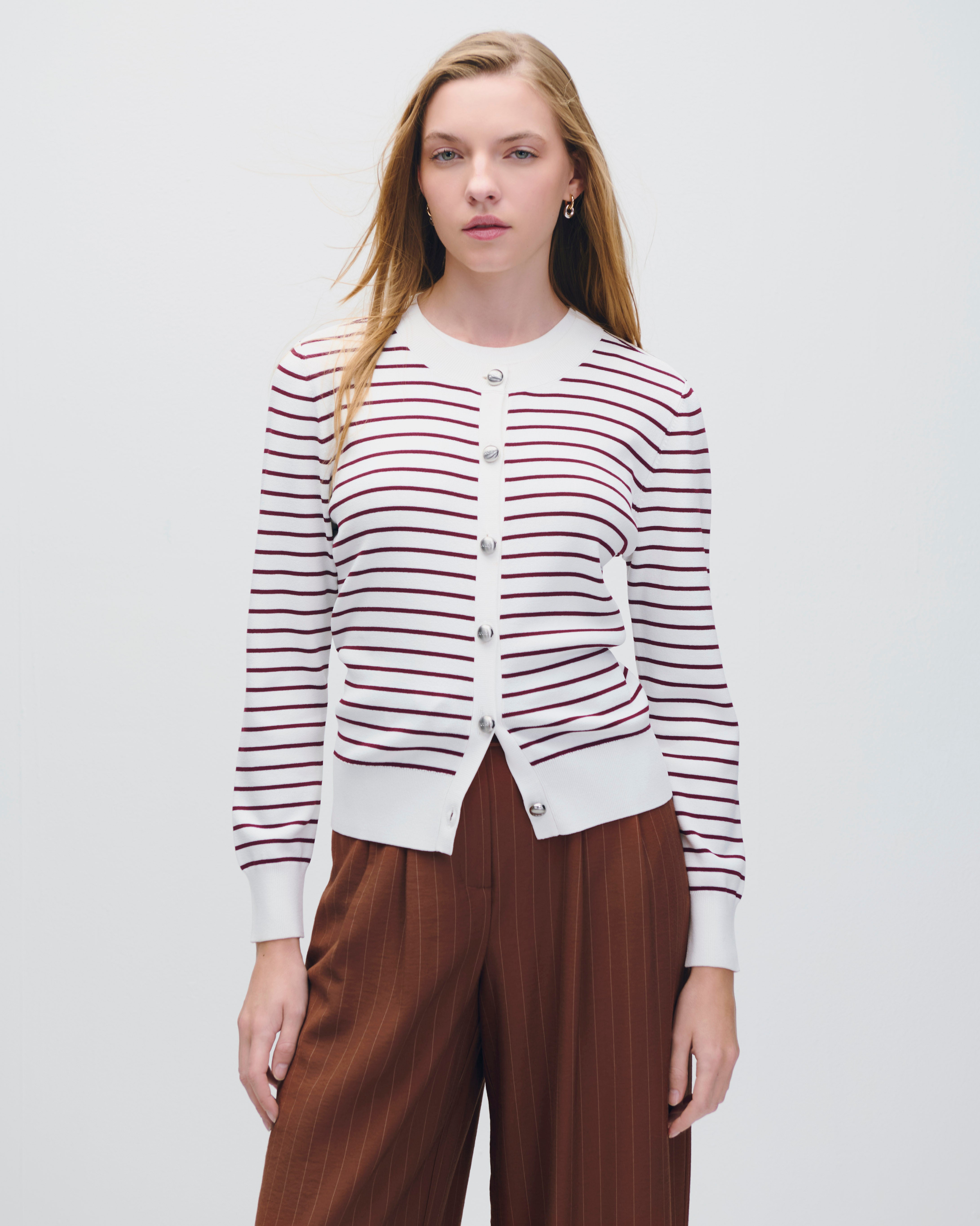 Cárdigan Tejido De Punto A Rayas Vino Botones Metálicos