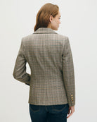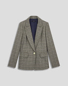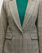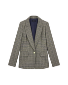 Confeccionado en príncipe de Gales color nuez, este blazer con solapa de pico es ideal para elevar cualquier look. Llévalo con jeans o sobre vestidos para crear un contraste chic. Un esencial de moda que mezcla sobriedad y modernidad en un equilibrio perfecto.