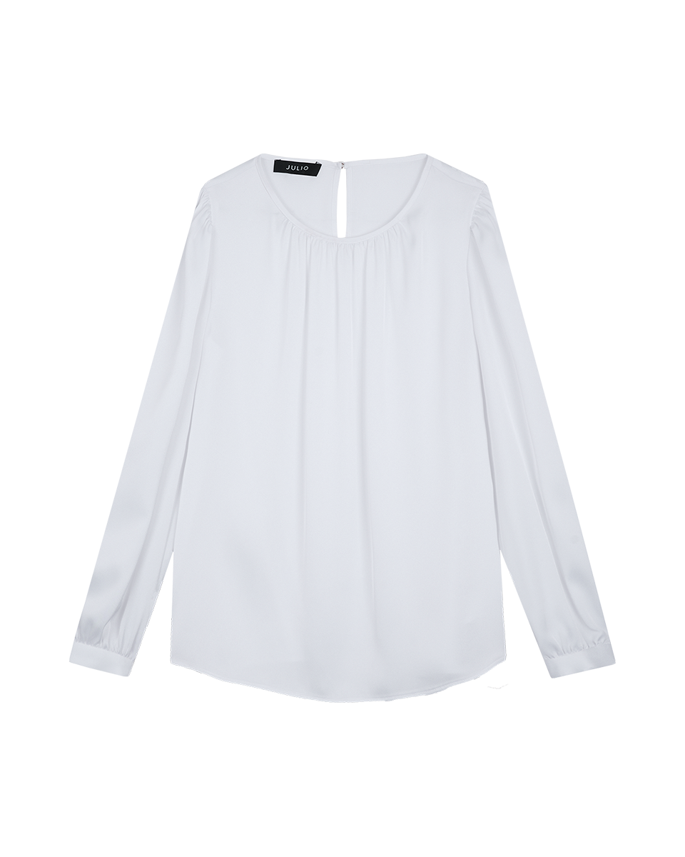Blusa Blanca De Satín Pliegues Escote Redondo