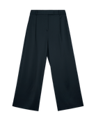 Satín marino, tiro alto y pinzas frontales hacen de este palazzo una pieza elegante y versátil. Su fluidez aporta movimiento y sofisticación. Combínalo con blusas ligeras o camisas oversize para lograr outfits de impacto.