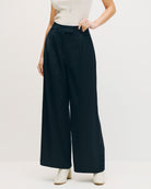 Pantalón Palazzo De Satín Marino Tiro Alto Con Pinzas