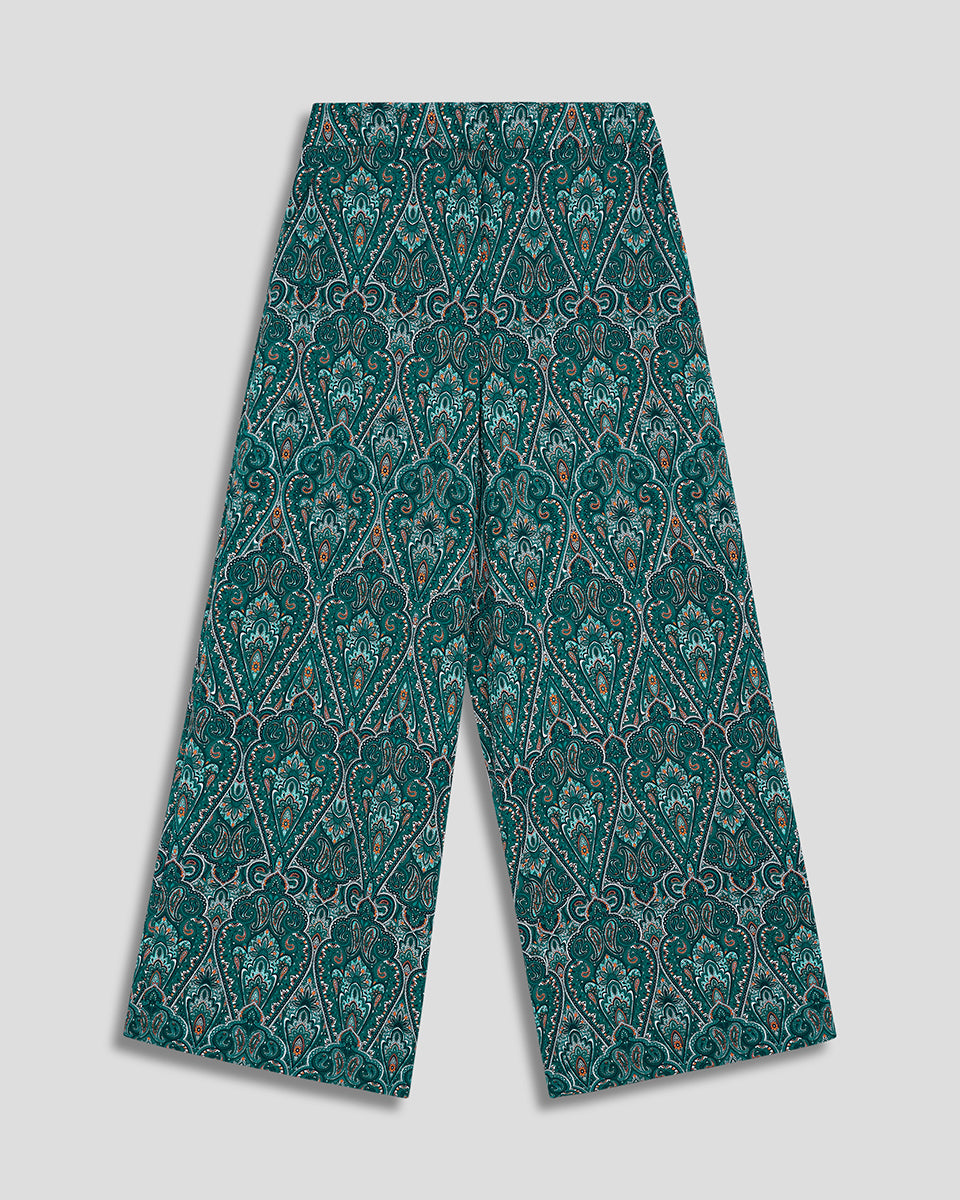 Pantalón Palazzo Tiro Alto Esmeralda Estampado Ornamental