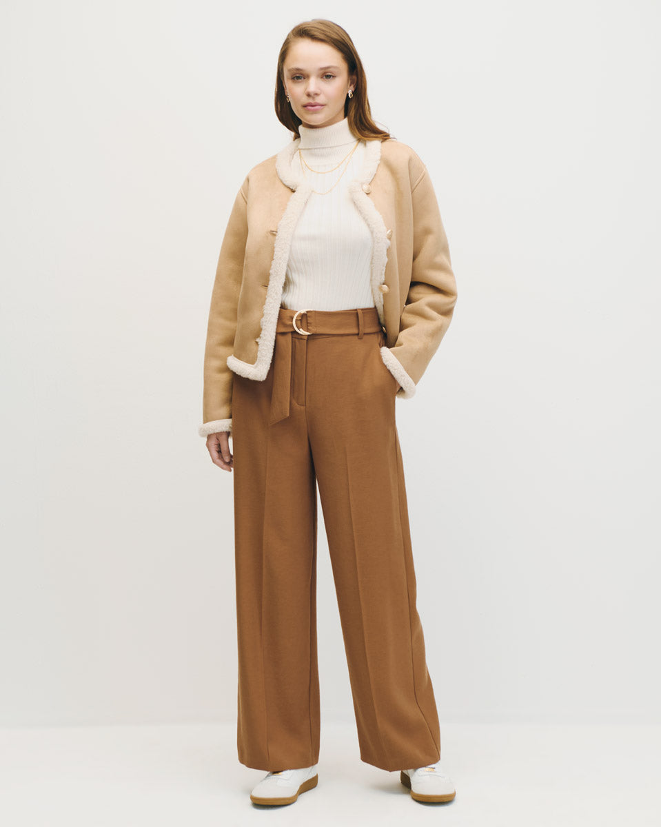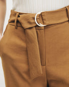 Pantalón Recto Fluido Nuez Pretina Enresortada Con Banda