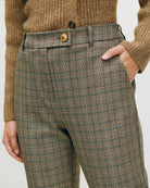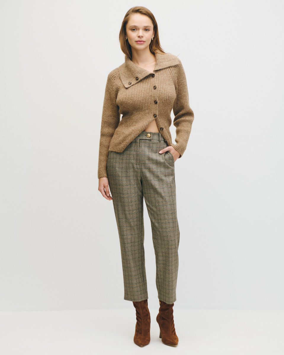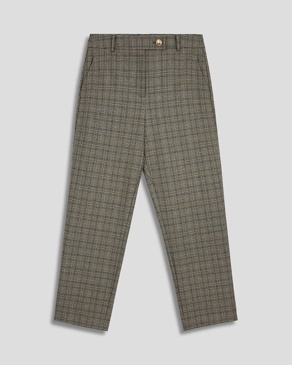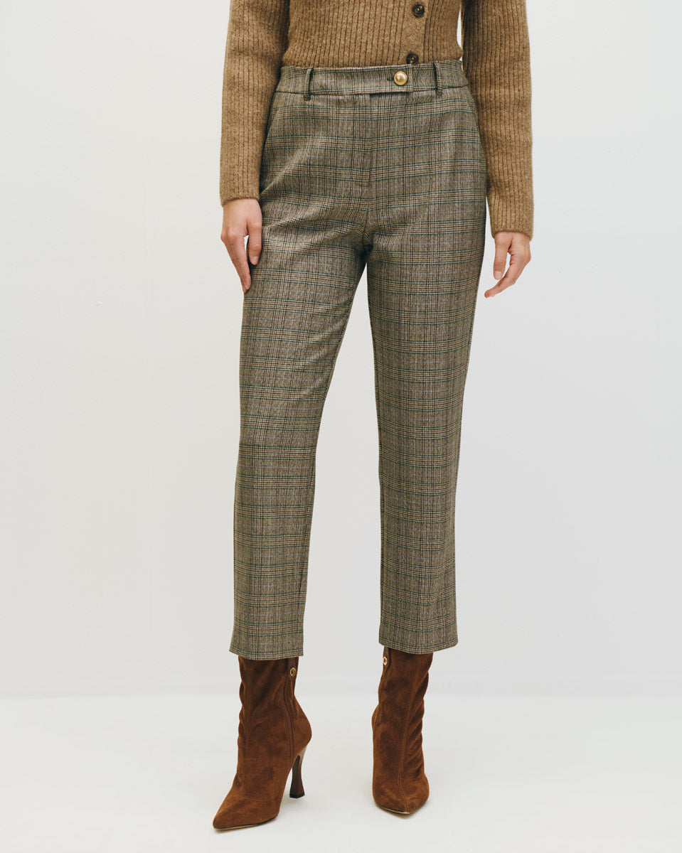 Pantalón Recto Tiro Alto Príncipe De Gales Nuez