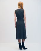 Este vestido midi gris Oxford en línea A cuenta con escote en V y botones que imitan textura arena. Su silueta ligera y femenina funciona en planes casuales o más formales. Combínalo con botas altas o tenis para un estilo effortless con estructura.