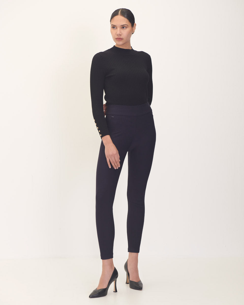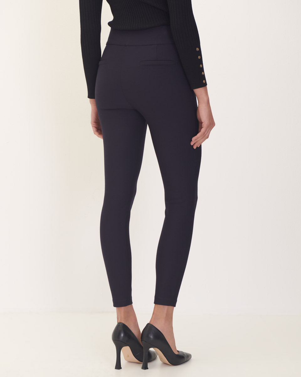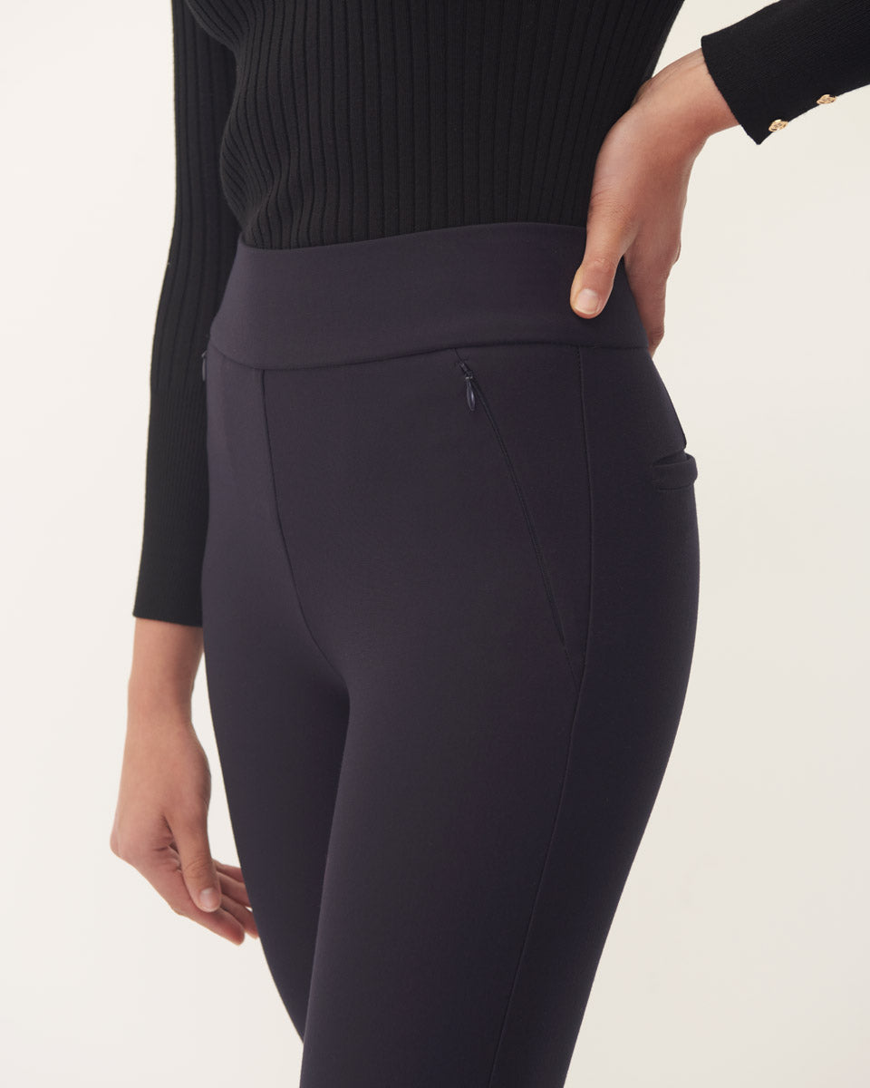 Leggings Azul Marino Pretina Ancha Bolsillos Cierres