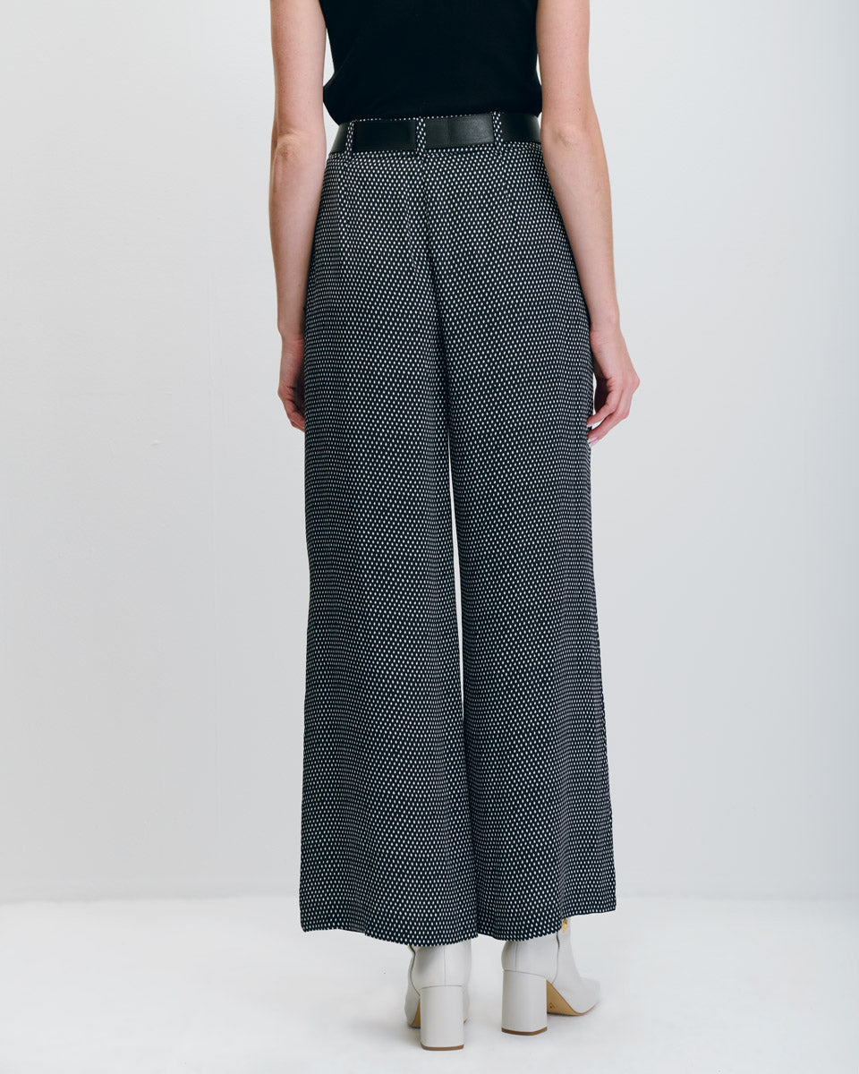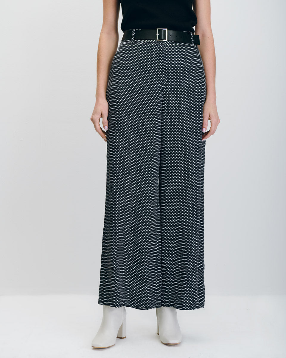Pantalón Palazzo Satín Tiro Alto Mini Print Con Cinturón