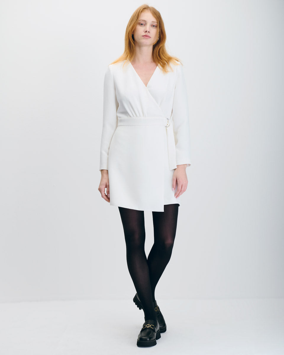 El rumper blanco envolvente redefine el estilo casual con detalles que elevan la prenda: hombreras marcadas, frunces estratégicos y una fajilla que estilizará tu cintura. Es ideal para días donde buscas comodidad sin perder estilo. Perfecto para un brunch, un paseo o una reunión informal, combínalo con sandalias doradas y accesorios JULIO para un look fresco y elegante.