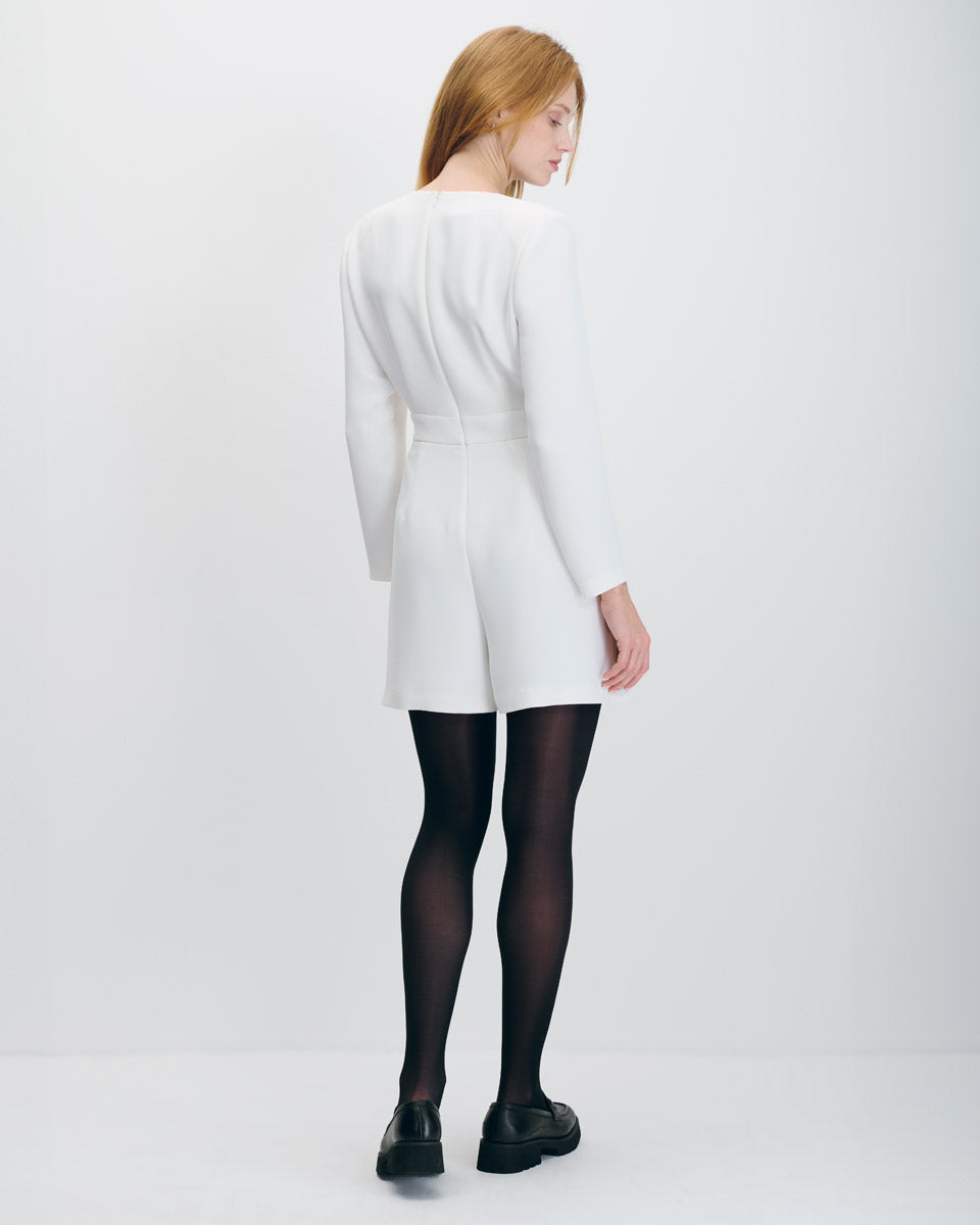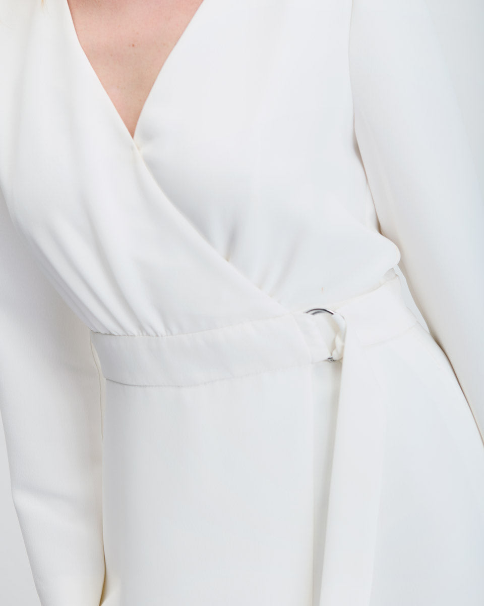 Rumper Blanco Envolvente Fajilla Con Frunces Y Hombreras