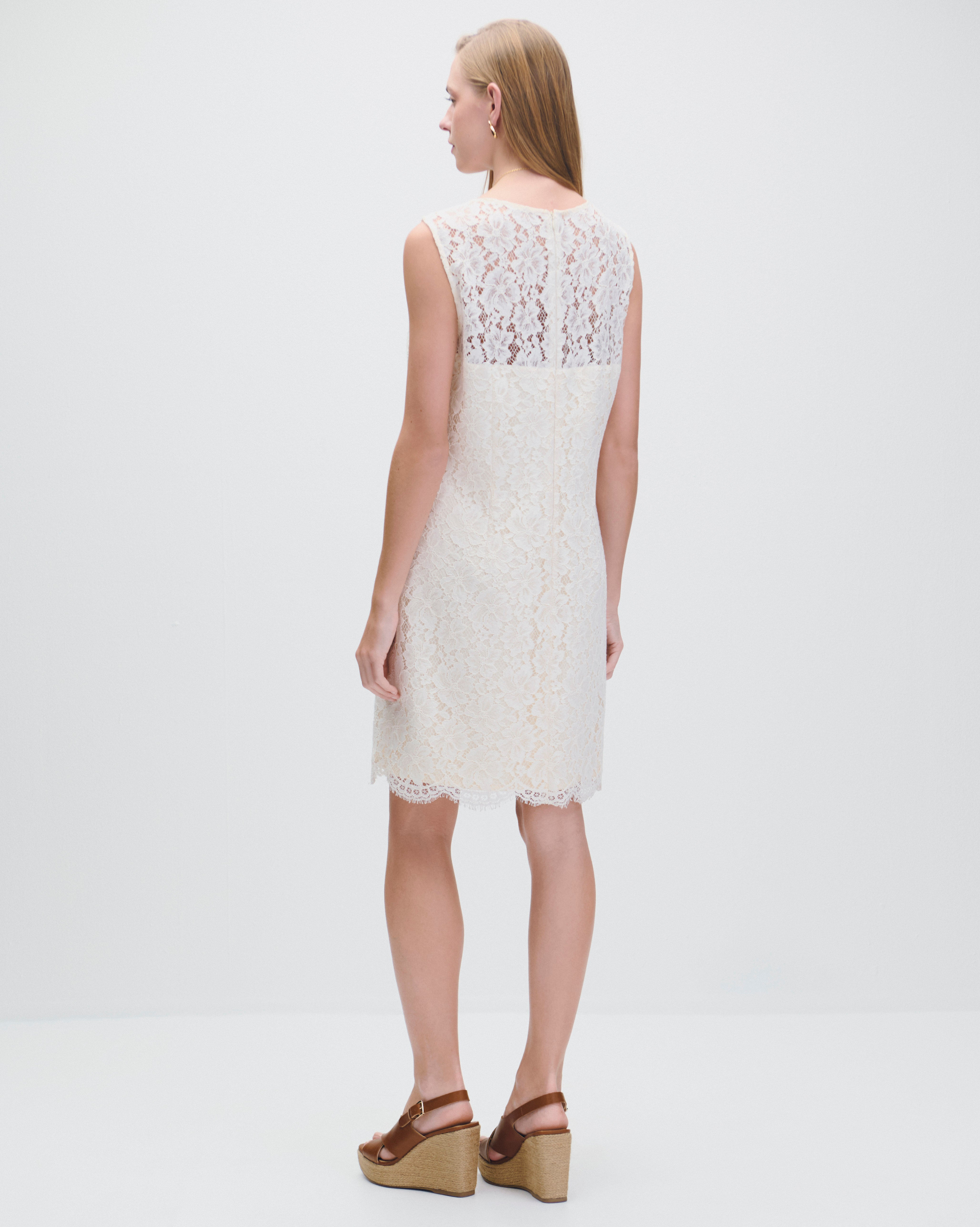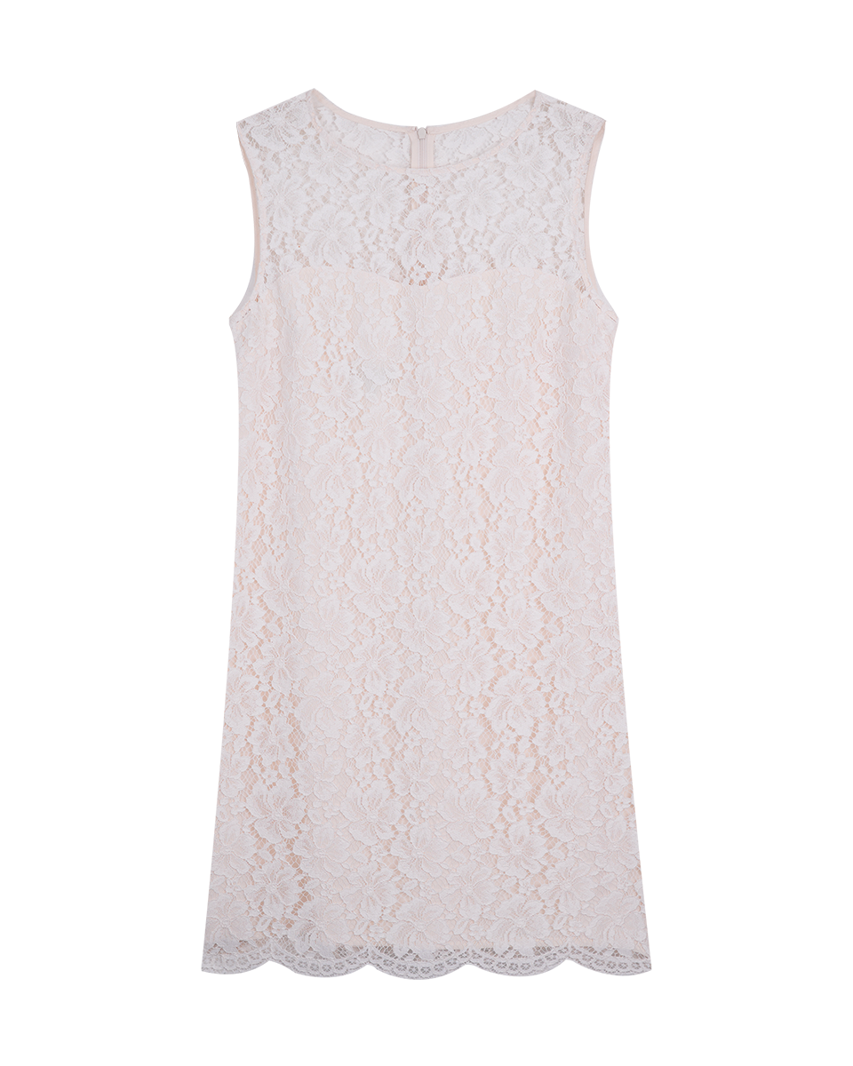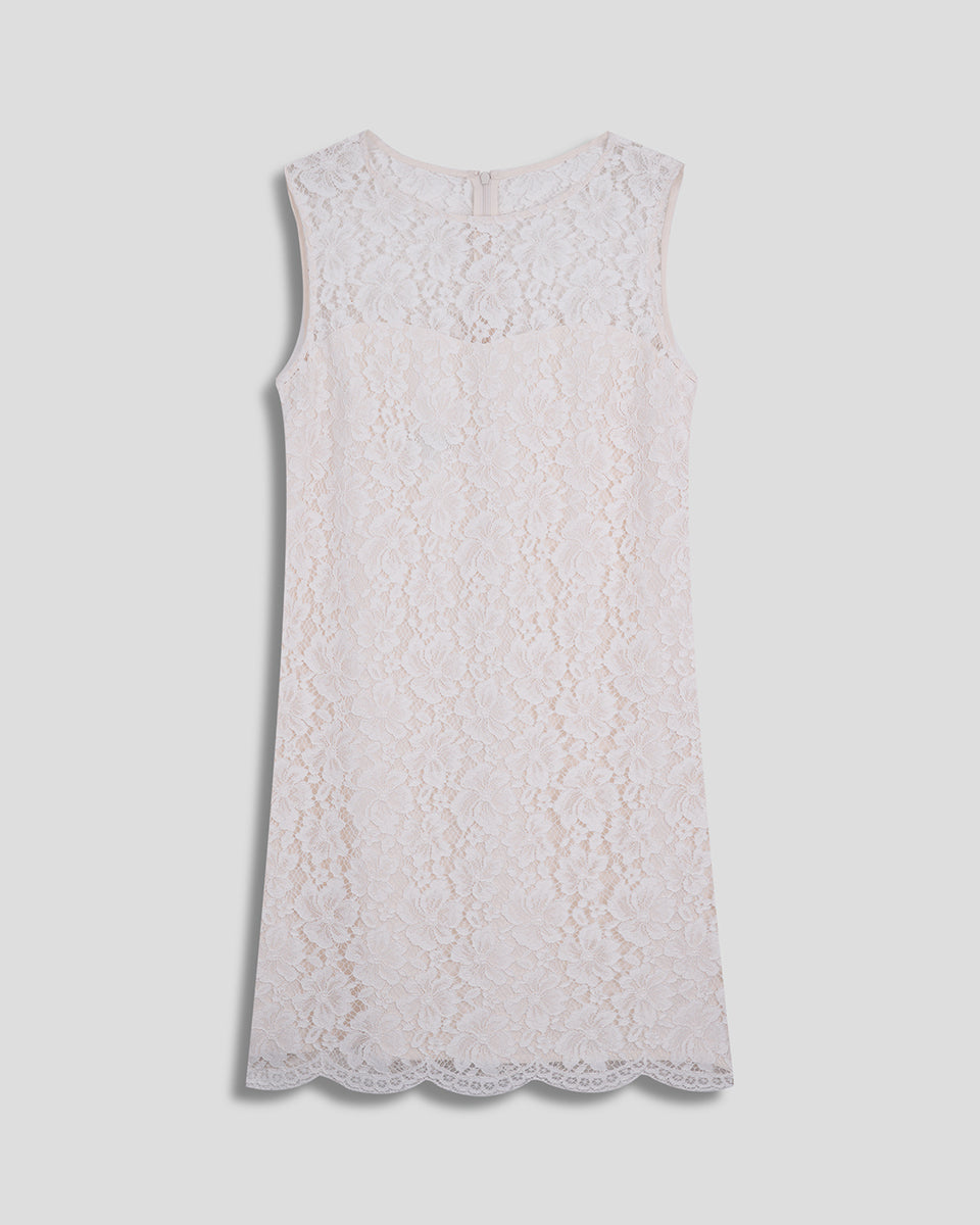 Vestido Silueta H Encaje De Punto Floral Escote Redondo